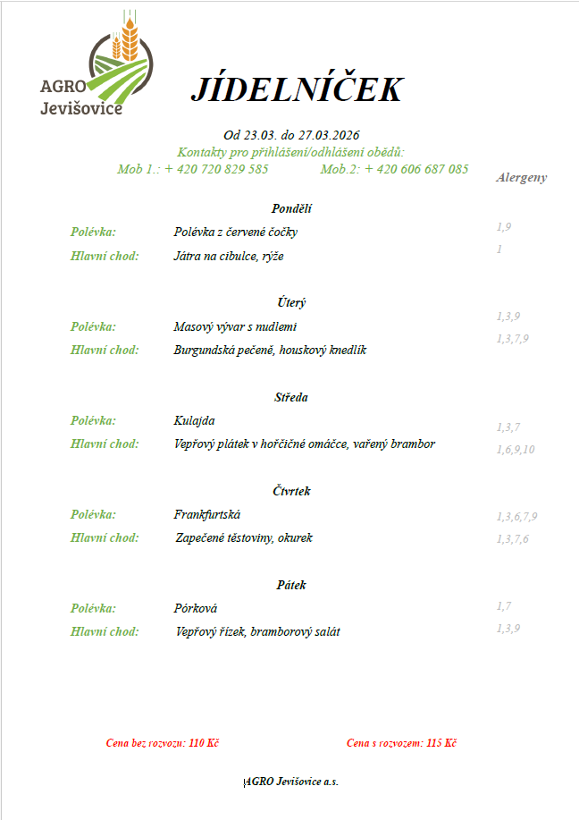 Tento nový objednávkový systém bude platit i pro strávníky, kteří si chodí pro obědy osobně do kuchyně, rovněž pro zaměstnance společnosti AGRO Jevišovice, a. s.